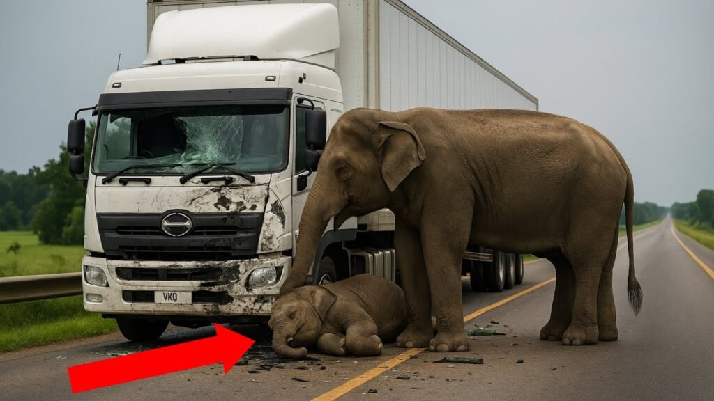 In the wilds of Africa, an ordinary day turned into an unforgettable lesson in love and instinct. A baby elephant, having wandered onto a dusty road, was accidentally struck by a vehicle. The impact left the calf injured and disoriented, its cries echoing through the savanna.What followed stunned witnesses.