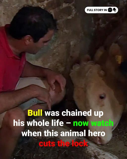 Bull was chained up his whole life – now watch when this animal hero cuts the lock