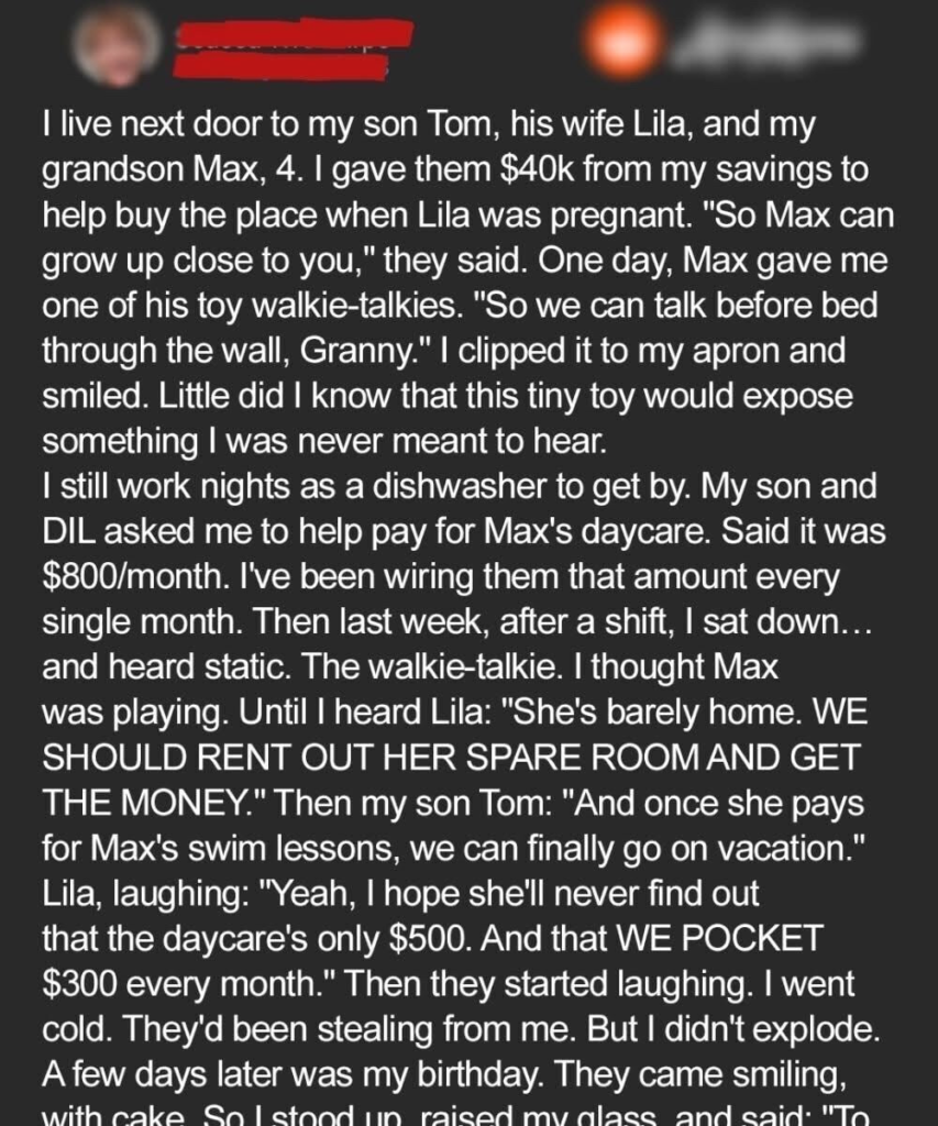 The next morning, I calmly told him I’d heard. He didn’t apologize. I stopped helping—except for Noah.
