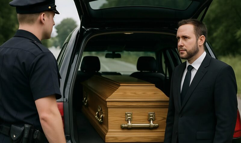 — You see, I’m… I’m late for a funeral. Urgent matter. The family is waiting… a very important person… — he stammered, looking everywhere but the officer’s eyes.