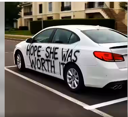 And then… we got to my car. Spray-painted across the driver’s side in huge black letters: “Hope She Was Worth It.” I stopped. My breath caught. Emily did too — her smile vanished, replaced by a silence so sharp it cut straight through me.