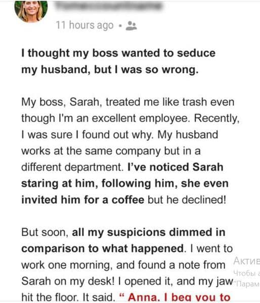 I thought my boss wanted to seduce my husband, but my suspicions dimmed when I realized what she truly desired