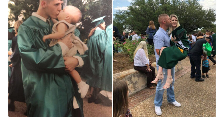 Dennis Roach, a dad from Texas, must have felt ten times better in 2018 because his daughter’s high school graduation gave him the chance to take a picture from 2000 all over again, and the result made people all over the world smile…