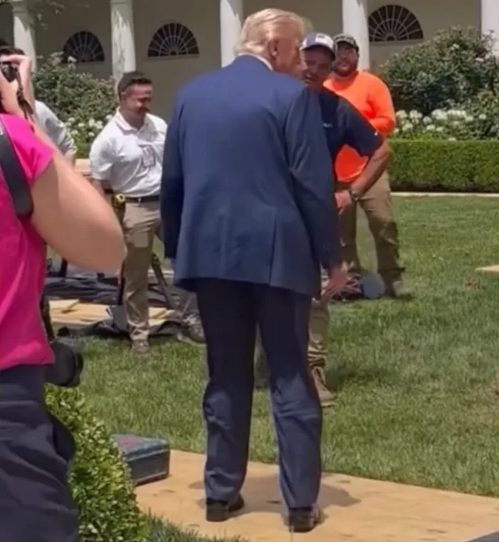 In recent weeks, Trump has maintained a packed public schedule. After spending the weekend at Camp David, he returned to Washington and was photographed inspecting construction work on the White House lawn, standing confidently on a wooden plank laid over the grass while chatting with workers.
