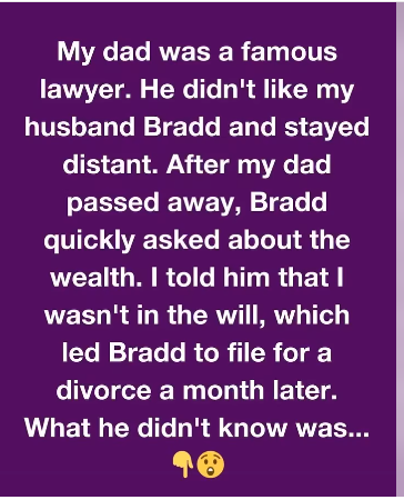 “So… how much did he leave us?” Sarah quietly replied that she wasn’t her father’s biological daughter and had been left out of the will. Bradd’s mask slipped.