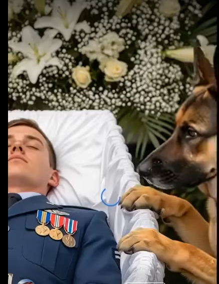The funeral was nearly over when a sharp bark split the silence. At first, mourners thought it was grief, but Max—the late Captain Ryan’s K-9 partner—was alert, restless, and circling the flag-draped casket. His low growl unsettled the room. Officer Luke, who had trained Max, stepped forward and listened closely. Faintly, from within the casket, came scratching.