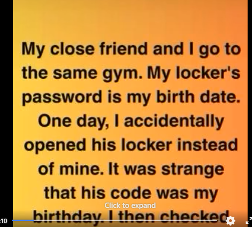 My best friend and I share a gym, and our locker codes match—my birthday. One day, I opened his locker by mistake and found a notebook inside. It had workout notes but also pages with my name, my birthday, and key moments from my life. Unsettled, I confronted him. He casually claimed his code was random, but I sensed a lie.