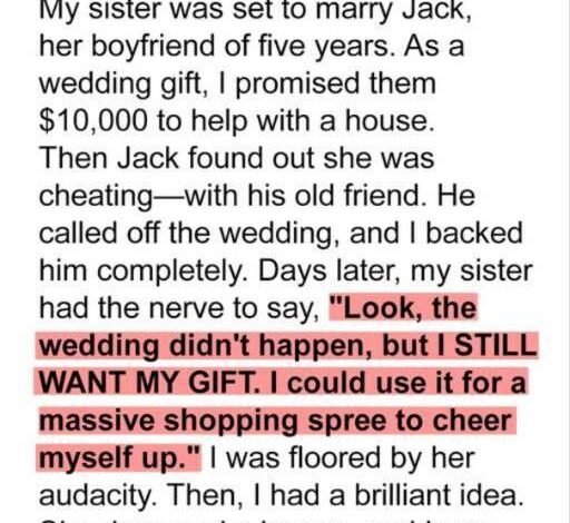 Jack discovered my sister had been unfaithful, not with a stranger, but with a close college friend. He was devastated, and the wedding was canceled instantly. My sister, instead of remorse, seemed more upset about losing the celebration. Days later, she called me, demanding the $10,000 anyway—for a shopping spree to “cheer herself up.”