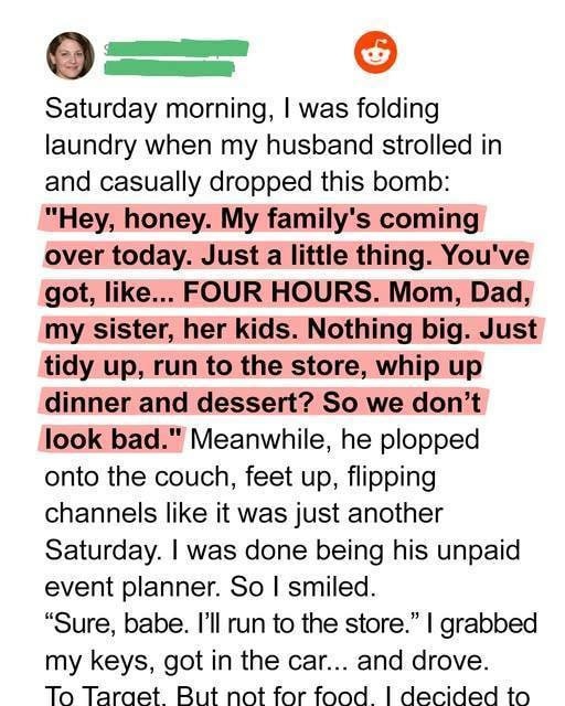 The final straw came one Saturday morning. Amanda, savoring rare free time, was handed a checklist: clean the house, shop, cook a full meal, bake dessert—because Alex had invited his entire family over with four hours’ notice.