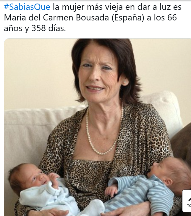 One woman who challenged conventions was María del Carmen Bousada de Lara of Cádiz, Spain. In 2006, at the age of 66 years and 358 days, she became the world’s oldest mother when she gave birth to twin boys, Christian and Pau.