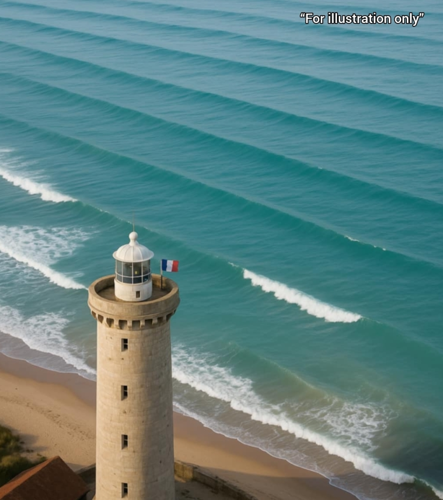 In the footage, a tower stands on the shore, highlighting the proximity to land. Despite this, the waves are already showing patterns that indicate a sudden and potentially life-threatening shift. These warning signs are subtle but identifiable: