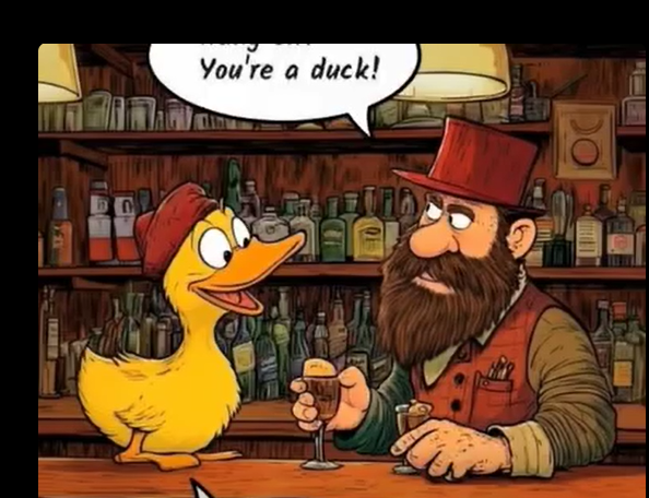 A duck waddled into a pub and asked for a beer and a ham sandwich. The bartender blinked and said, “Wait a minute—you’re a