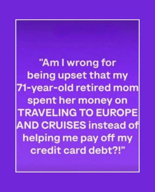 In today’s world of soaring expenses, financial conflicts within families are becoming common. A 71-year-old retired mother recently chose to spend her savings on European travel and cruises rather than paying off her adult child’s credit card debt. This decision has sparked heated debate.
