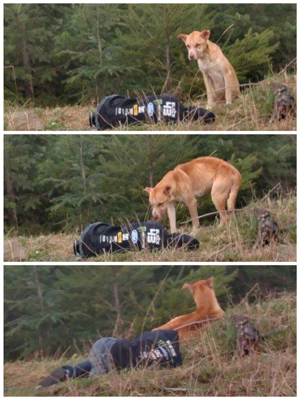 At that point, the girls had, to put it mildly, a very original notion. They determined that Amanda would pretend to be in need of assistance, lay down, and “play dead.” Declared and carried out: Amanda laid down on the ground the following day in the location she thought Bear was. And what transpired two hours later warmed the hearts of hundreds of animal companions.
