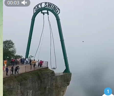 A man in his 20s was filmed laughing and shouting with joy while spinning high in the air on a giant slingshot ride (known as “hulaje”) at a local fair.