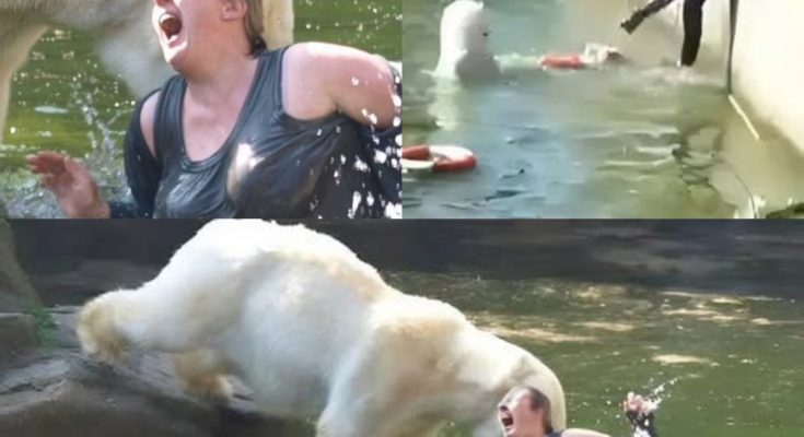 n a shocking incident on Friday, a 32-year-old woman was attacked by a polar bear after it jumped into her enclosure at the Berlin Zoo during feeding time. The woman, identified only as Maidy K, suffered multiple serious injuries before being rescued by zoo staff.