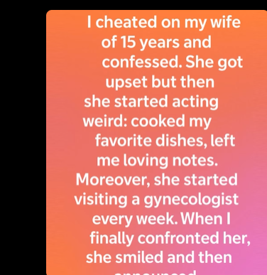 Weeks passed, and her calmness felt unsettling. Every week, she said she had appointments with her gynecologist. I tried to trust her, but guilt made me suspicious.