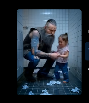 Just after midnight, Big Mike, a seasoned biker, pulled into a quiet roadside diner for a break. While there, he discovered a frightened six-year-old girl named Emma hiding in the restroom. Her feet were blistered and raw, and her whisper revealed a chilling truth: “He’s smart. Everyone thinks he’s nice.” The bruises on her body confirmed her silent plea for help.