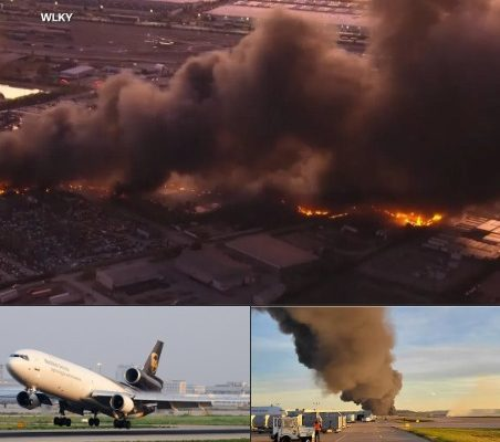 Chaos erupted near Louisville Muhammad Ali International Airport on Tuesday evening when a UPS cargo plane went down in flames shortly after takeoff. Thick black smoke billowed across the skyline as explosions echoed through nearby neighborhoods. Emergency crews rushed to contain the inferno in what officials are calling one of the worst aviation accidents in recent memory.