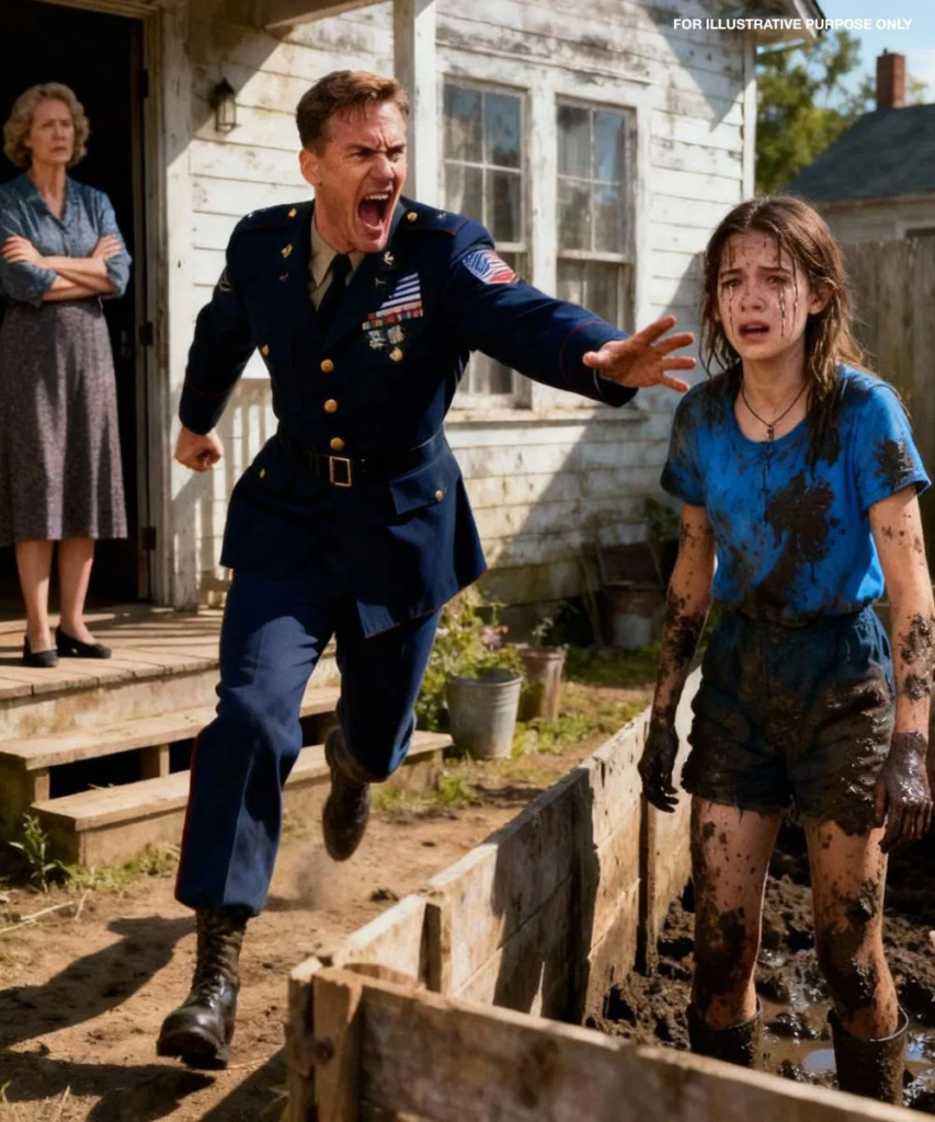 Her stepmother, Sandra, appeared with a bucket, unfazed. “She didn’t finish her chores,” she said coldly. “No dinner until the work’s done.”
