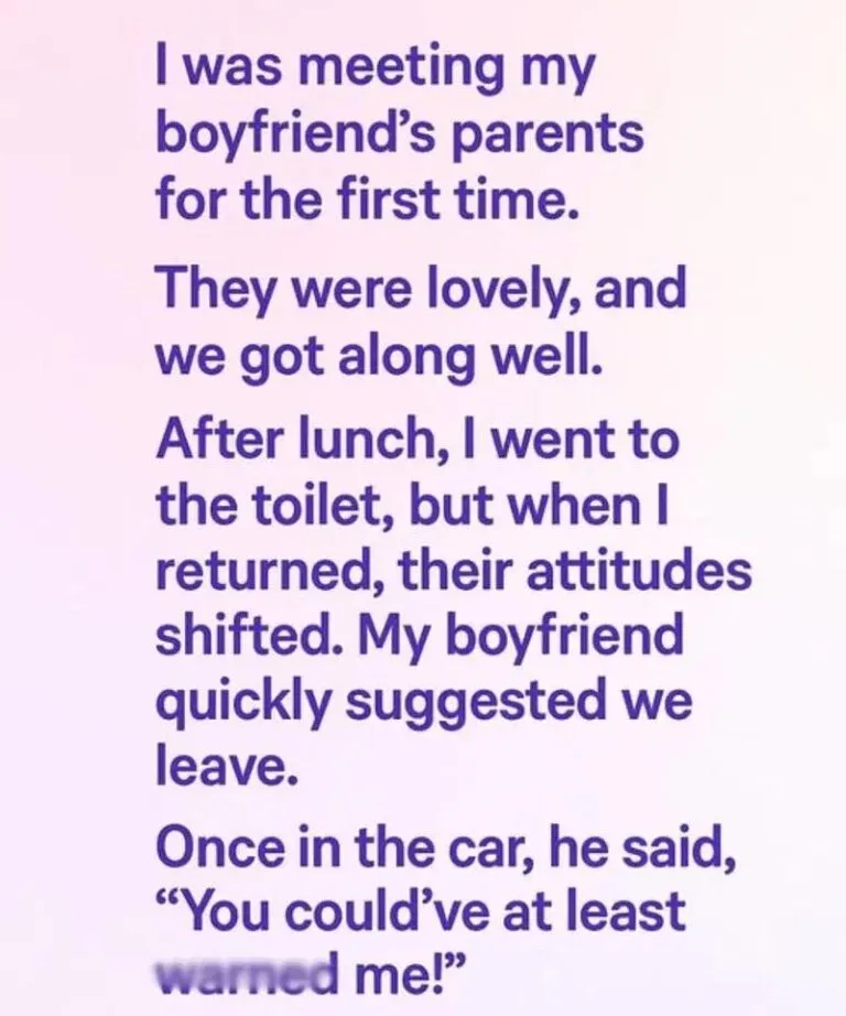 Meeting your partner’s family for the first time is nerve-racking at any age. You want to make a good impression, find common ground, and hope everything goes smoothly. When I met my boyfriend’s parents, it seemed perfect at first—warm smiles, gentle jokes, a cozy casserole that reminded me of my grandmother’s Sunday dinners. I remember thinking, This couldn’t be going better.