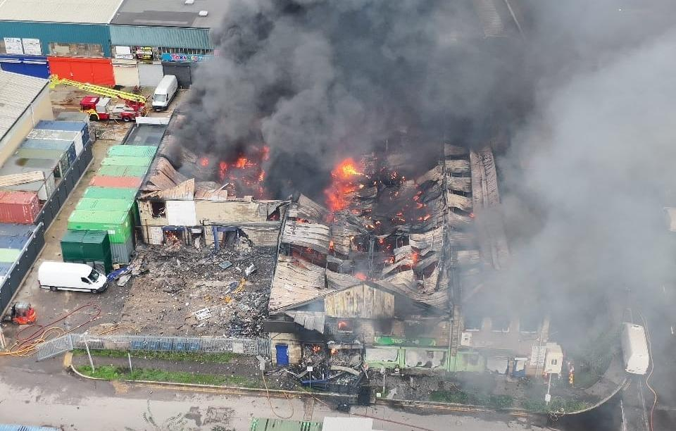 The fire service declared a major incident after it was called to a blaze in a warehouse containing fireworks at around 9am.