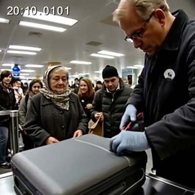She wore a knitted cardigan and sensible shoes, and though she looked tiny compared to the towering metal detectors and bold warning signs, she carried herself with a quiet confidence.