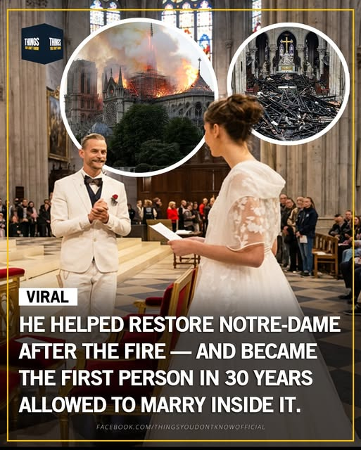 A carpenter who spent years working on the restoration of the historic cathedral was granted a rare and extraordinary honor: he was allowed to get married inside Notre-Dame — becoming the first person in nearly 30 years to do so.
