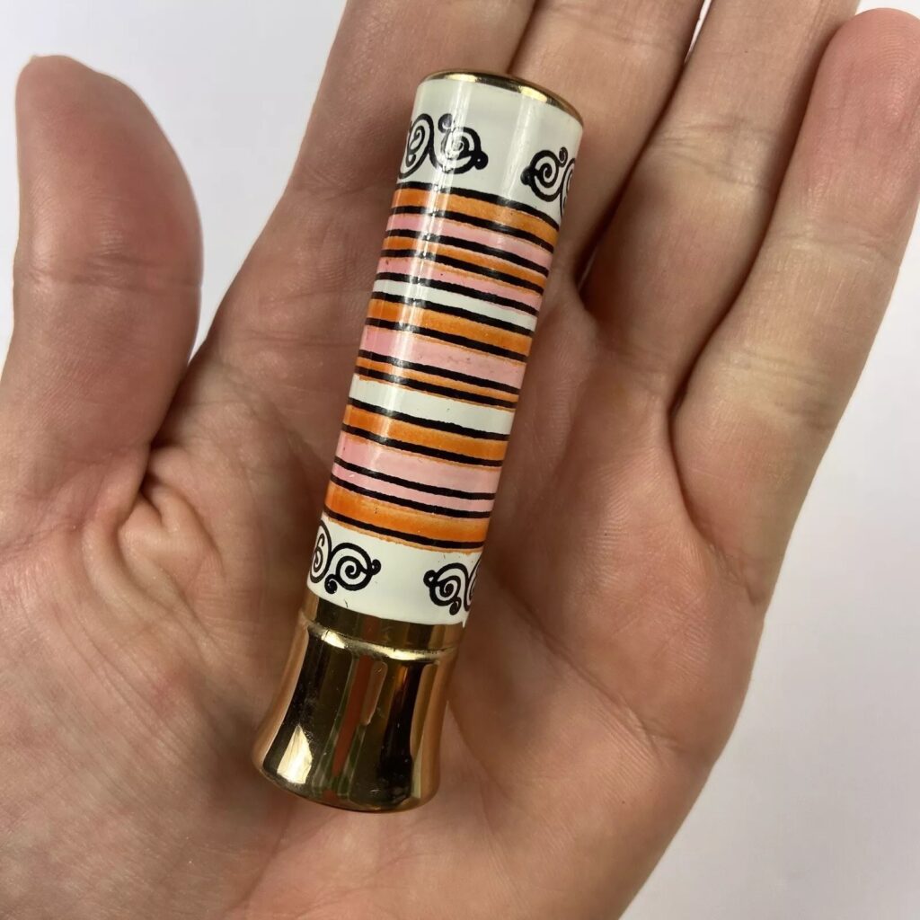 The 1960s Yardley London Look West Side Slicker in orange and pink stands out as a vivid relic from a dynamic era of fashion. This item, emerging during the peak of the swinging ’60s, embodies the bold and innovative spirit of the time. Yardley London, known for its high-quality cosmetics and stylish packaging, showcased these qualities in the Look West Side Slicker.