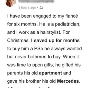 A woman shared her shocking Christmas experience on Reddit after receiving an unexpected gift from her fiancé. While she had saved for months to buy him a…