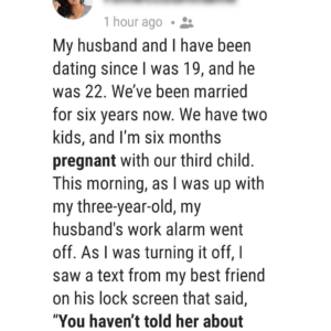 An anonymous Reddit user shared a devastating story about discovering her husband’s affair with her best friend while she was six months pregnant. Married for six years…