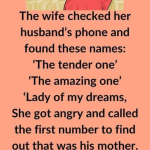 The wife checked her husband’s phone and found these names: Feeling suspicious and upset, she called the first number and discovered it was his mother. Next, she…
