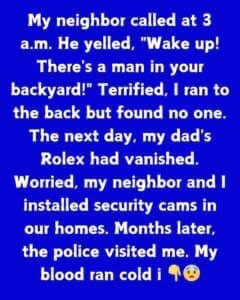 There’s a man in your backyard!” Terrified, I ran to the back but found no one. The next day, my dad’s Rolex had vanished. Worried, my neighbor…