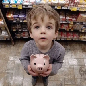 A LITTLE BOY USED THE LAST OF HIS PIGGY BANK MONEY TO BUY >>>>>>>