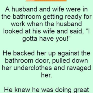 A husband and wife were in the bathroom getting ready for work when the husband looked at his wife and said, “I gotta have you!” He backed…