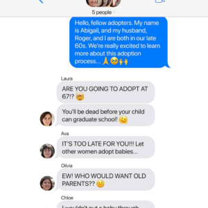After announcing my desire to adopt at 60, I never expected the overwhelming wave of criticism that followed. My husband, Roger, and I, both in our late…
