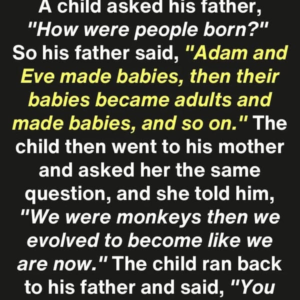 A child asked his father, “How were people born?” So his father said, “Adam and Eve made babies, then their babies became adults and made babies, and…
