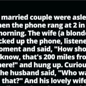 A married couple were asleep when the phone rang at 2 in the morning. The wife (a blonde) picked up the phone, listened for a moment, and…