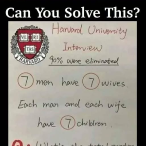 The seven males each have seven wives. Let’s first determine the total number of wives: 49 spouses come from 7 males × 7 wives / man. Both…