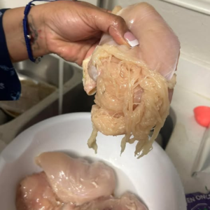 A mother was completely in sh0ck when the poultry she was preparing for dinner separated into stringy pieces of spaghetti. Explaining pasta was not on the menu…