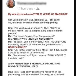 After 56 years of marriage, Erin and Mike’s relationship hit a rough patch when Mike stopped being romantic, claiming he was tired of making all the effort….