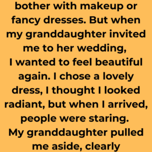Imagine that after making every effort to look stunning for your granddaughter’s wedding, you discover that she is ashamed of your appearance. The grandmother in this tale…