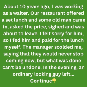 About 10 years ago, I was working as a waiter at a small restaurant. We offered a set lunch at a reasonable price, and one day, an…