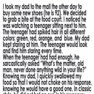 “I took my dad to the mall the other day to buy some new shoes (he is 92). We decided to grab a bite at the food…