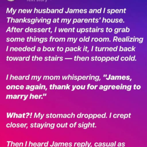 My new husband James and I spent Thanksgiving at my parents’ house. After dessert, I went upstairs to grab some things from my old room. Realizing I…