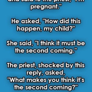 A blondie went to confession and said to the priest, “I’m pregnant.” He asked, “How did this happen, my child?” She said, “I think it must be…