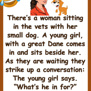 The joke in “The Vets” centers around a conversation between two women at a veterinary clinic. One, an older woman, is with her dog, who has a…