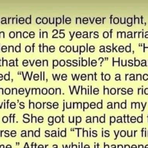 The article tells a humorous story about a married couple who reportedly never fought in 25 years of marriage. When asked how that was possible, the husband…