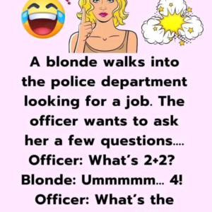 A blonde walks into the police department looking for a job….This joke was comedy perfection leaving us in tears of laughter The story is a light-hearted joke…