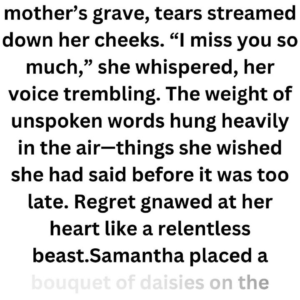 Echoes of Loss, In the wake of her mother’s passing, Samantha grapples with profound grief and regret, finding solace in cherished memories and a promise to honor…